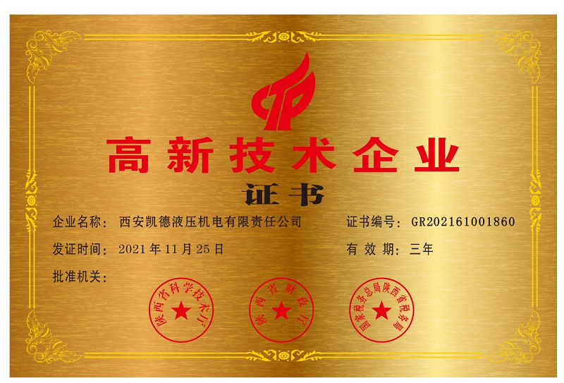 • 熱烈祝賀西安凱德液壓通過(guò)國(guó)家“高新技術(shù)企業(yè)”認(rèn)證