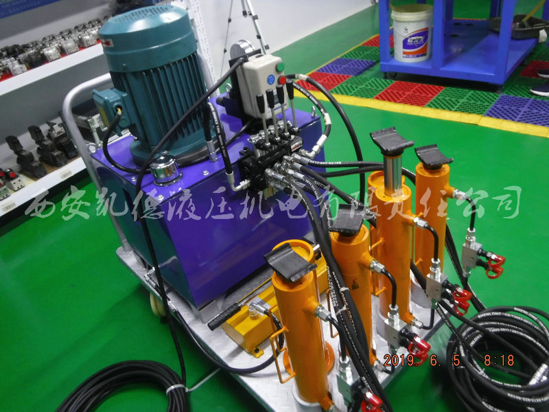 此次承接軍工雷達(dá)測(cè)試車輛調(diào)平支撐裝置為人工調(diào)平系統(tǒng),主要應(yīng)用于實(shí)驗(yàn)研究方向和車輛標(biāo)定工作。調(diào)平系統(tǒng)構(gòu)成:由泵站、控制閥組、調(diào)平支撐油缸、定制卡爪輔件等組成。采用分件搬運(yùn),現(xiàn)場(chǎng)組合的設(shè)計(jì)原則,單件重量不大于30Kg,便于搬運(yùn),操作靈活。