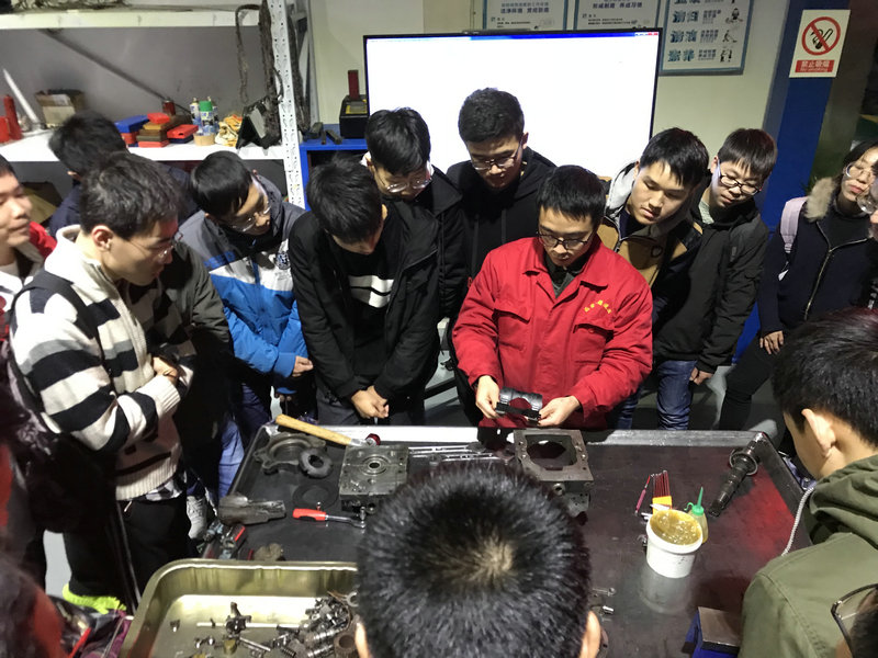 在技術(shù)分享的同時(shí),同學(xué)們帶著很多好奇的問(wèn)題,對(duì)部件設(shè)計(jì)的新奇,以及對(duì)裝配要求的設(shè)計(jì)尺寸,對(duì)怎樣實(shí)現(xiàn)壓力的控制,油路的走向,提出了很多書(shū)本上涉及不到的問(wèn)題。